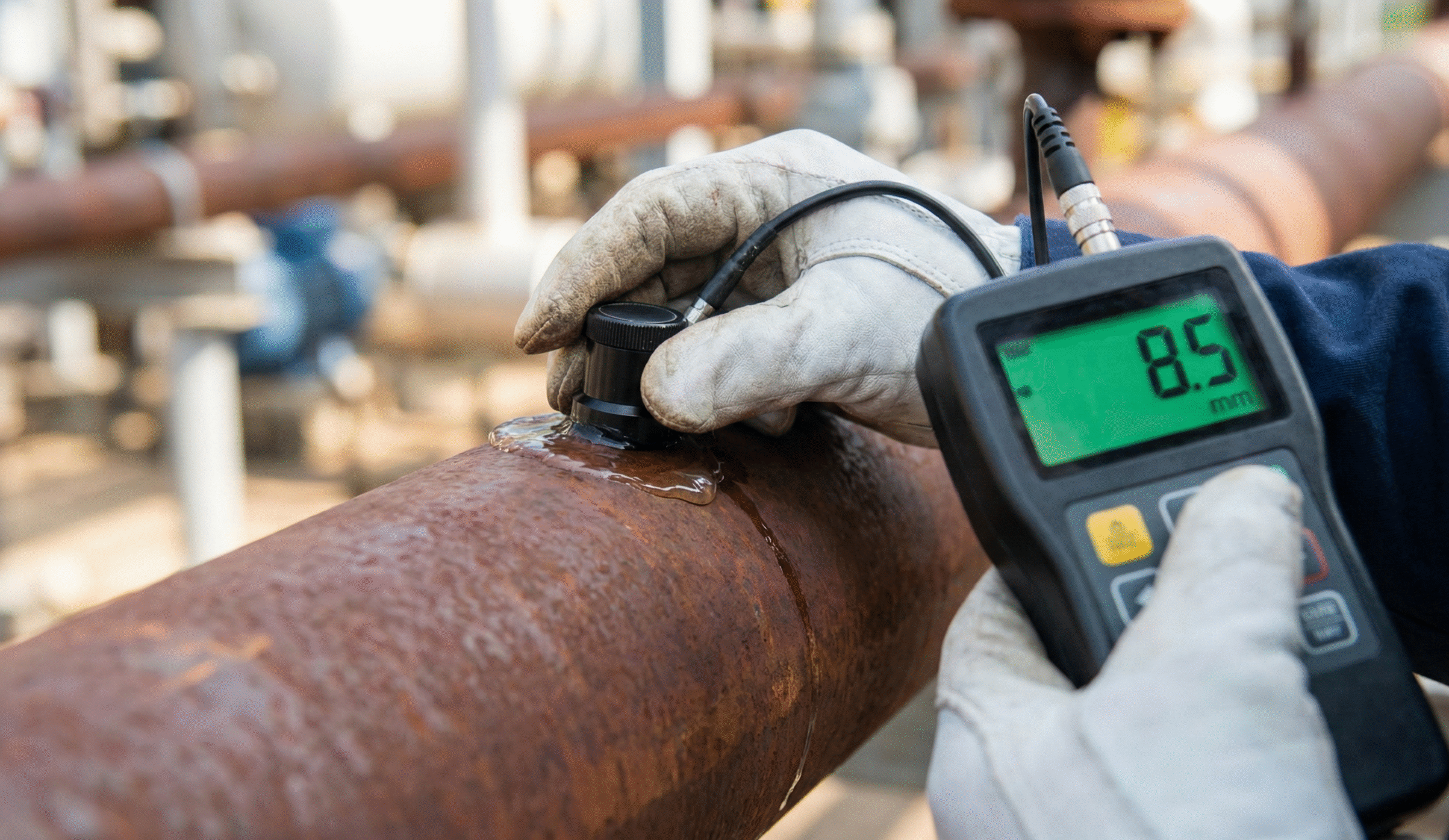 Maksudnya bukan cek catnya, tapi cek apakah dinding besi pipa tersebut sudah menipis karena karat (korosi) atau tidak. Untuk ini, digunakan teknologi Ultrasonik.