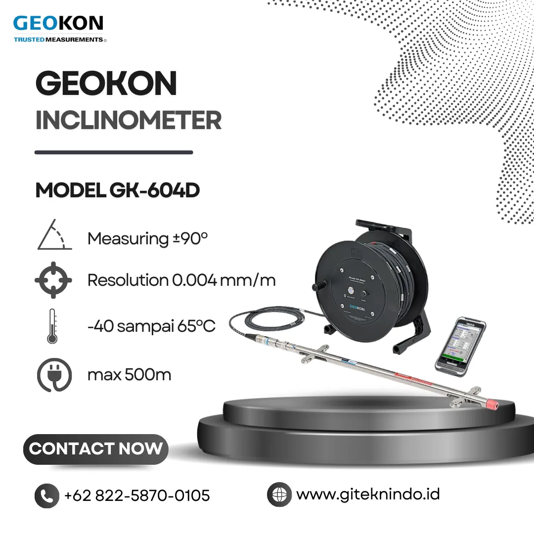 Geokon merupakan produsen alat ukur geoteknik ternama asal Amerika Serikat. Seri GK-604D menawarkan performa luar biasa dalam berbagai kondisi lapangan ekstrem.