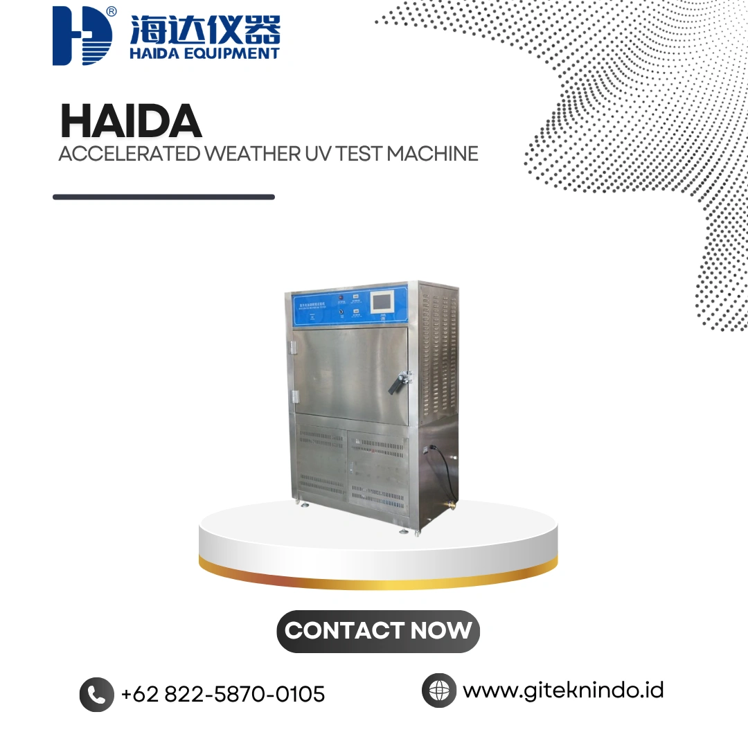 Accelerated Weather UV Test Machine adalah alat uji lingkungan yang dirancang untuk mensimulasikan efek penuaan material akibat paparan sinar ultraviolet (UV), kelembapan, suhu tinggi, dan kondensasi yang terjadi pada kondisi luar ruangan. Alat ini menggunakan lampu UV fluoresen untuk meniru spektrum sinar matahari dan menggabungkannya dengan siklus kelembapan seperti embun atau hujan guna mempercepat proses degradasi material.