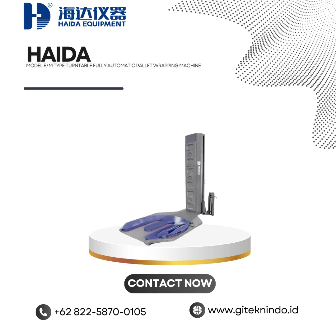 Model E-M Type Turntable Fully Automatic Pallet Wrapping Machine merupakan mesin pengemasan otomatis yang dirancang untuk membungkus pallet secara penuh tanpa intervensi manual, sehingga meningkatkan efisiensi dan konsistensi proses packaging.