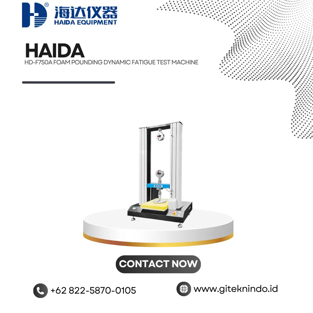 HD-F750A Foam Pounding Dynamic Fatigue Test Machine adalah alat uji yang digunakan untuk mengevaluasi ketahanan fatigue dinamis pada material foam atau sponge melalui metode penekanan berulang menggunakan indentor. Pengujian dilakukan dengan memberikan beban siklik yang konstan pada sampel sehingga dapat dianalisis perubahan sifat mekanik seperti deformasi permanen dan penurunan performa material. Sistem berbasis komputer memungkinkan pengolahan data secara akurat serta menampilkan berbagai parameter seperti gaya maksimum, kekuatan tekan, hingga karakteristik mekanik lainnya.