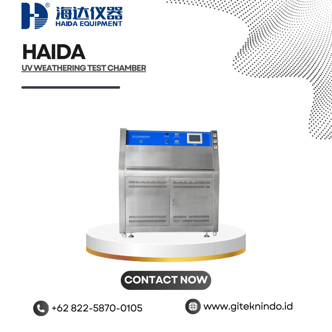 UV Weathering Test Chamber adalah alat uji penuaan material (accelerated weathering test chamber) yang digunakan untuk mensimulasikan efek sinar ultraviolet (UV), suhu, kelembaban, hujan, dan kondensasi terhadap material. Perangkat ini memungkinkan simulasi kerusakan yang biasanya terjadi pada material akibat paparan lingkungan luar ruangan seperti sinar matahari dan kelembaban.
