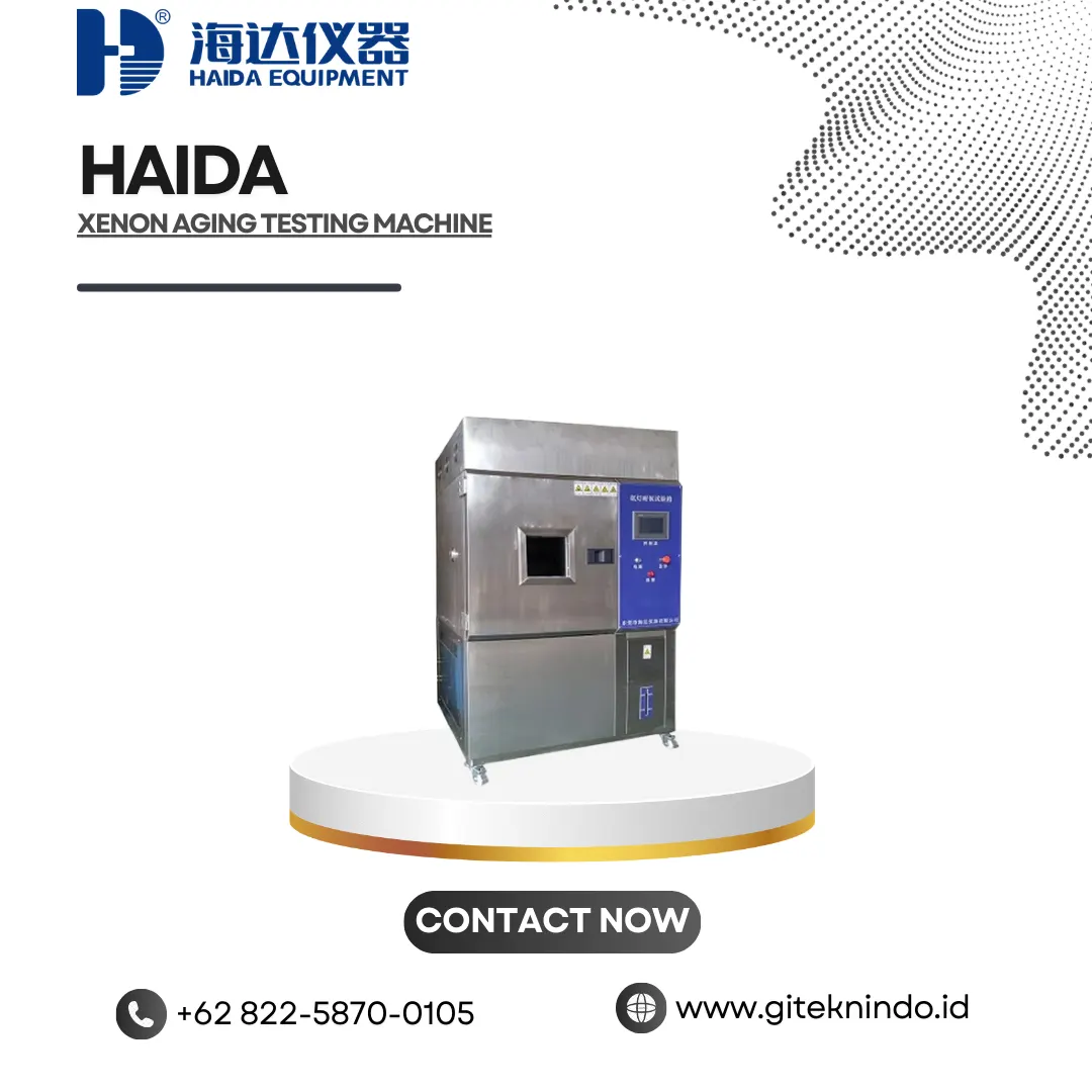Xenon Aging Testing Machine adalah alat pengujian lingkungan yang dirancang untuk mensimulasikan spektrum penuh sinar matahari menggunakan xenon arc lamp guna mengevaluasi ketahanan material terhadap paparan cahaya, suhu, kelembapan, dan hujan buatan. Dengan teknologi accelerated weathering test, peralatan ini mampu mereplikasi kerusakan yang biasanya terjadi setelah berbulan-bulan atau bertahun-tahun di lingkungan luar hanya dalam waktu beberapa hari atau minggu di laboratorium.