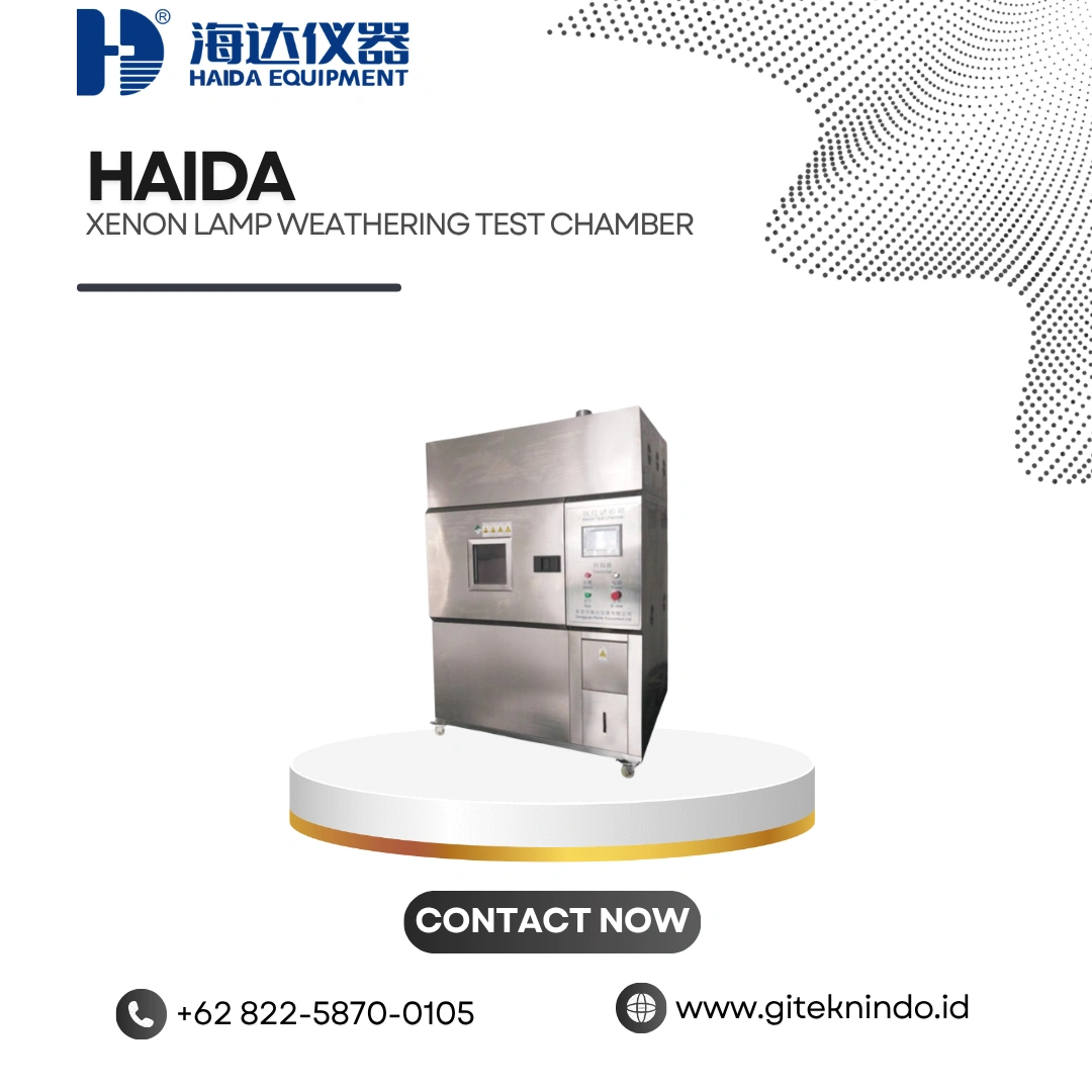 Xenon Lamp Weathering Test Chamber adalah alat uji lingkungan yang digunakan untuk mensimulasikan efek paparan sinar matahari alami terhadap material dengan menggunakan lampu xenon yang menghasilkan spektrum cahaya mendekati sinar matahari sebenarnya. Alat ini mampu mereproduksi berbagai kondisi lingkungan seperti radiasi cahaya, suhu, kelembapan, dan kondensasi untuk mengevaluasi ketahanan material terhadap proses penuaan akibat cuaca.