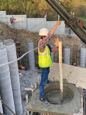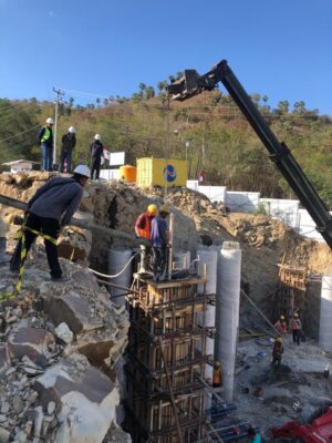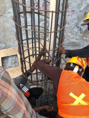 - Buat lubang dengan bantuan mesin bor putar, diameter lubang disesuaikan dengan diameter pipa inklinometer yang akan dipasang.
