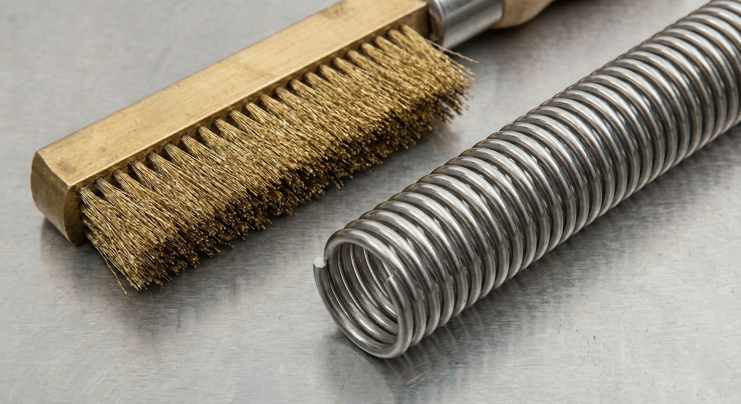 Coating tebal/keras (Epoxy, Aspal): Gunakan sikat Kuningan atau Rolling Spring Stainless Steel.